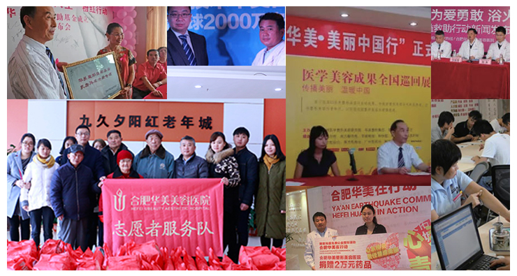 華美自建院以來一直熱心公益:心系雅安地震,華美愛心捐款;美麗中國行援助耳部畸形兒童;華美公益救助燒傷母親王阿姨;情系玉樹災(zāi)區(qū)華美愛心公益捐款;"暖冬公益"合肥華美新年敬老慰問活動等等,受到社會的認可與好評。